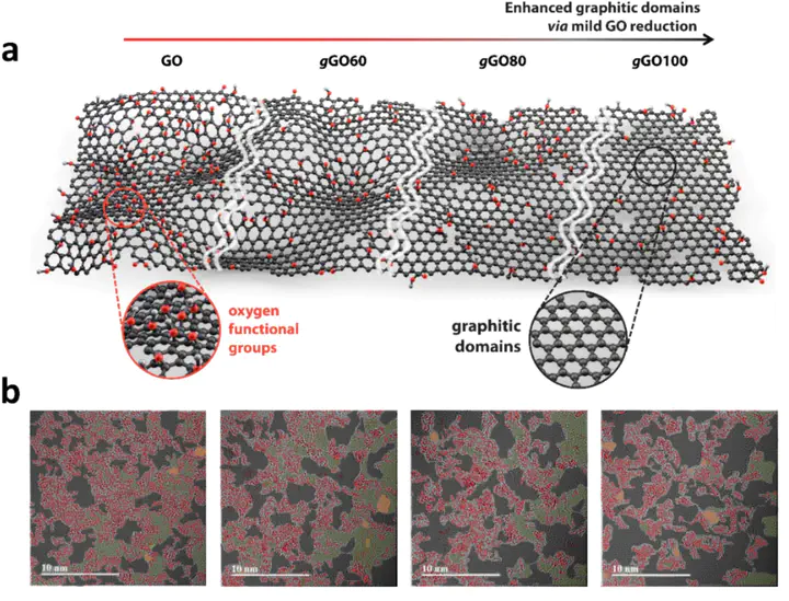 Graphene oxide (GO) has emerged as a prominent membrane material due to its potential for precise gas and liquid separations enabled by surface modification and channel optimisation. Here, we present tunable graphitic nanofluidic channels-containing GO (gGO) membranes, characterised by a continuous sp2 hybridised carbon lattice distributed across 35 %–72 % of their structure. This architecture enables exceptional water vapour permeability through a Fickian diffusion mechanism, contrasting the non-Fickian transport typically observed in conventional GO membranes. Our findings demonstrate ultrafast water vapour transport through well-defined hydrophobic nanofluidic channels, achieving enhanced water vapour/N2 selectivity. Utilising scalable, top-down multi-scale simulations based on the inverse Ising method, we elucidate the critical role of graphitic sp2 domains in optimising selective diffusion pathways for water molecules. The resulting gGO-based thin-film composite membranes deliver state-of-the-art water vapour/gas separation applications, showcasing their potential for advanced humidification or dehumidification applications.